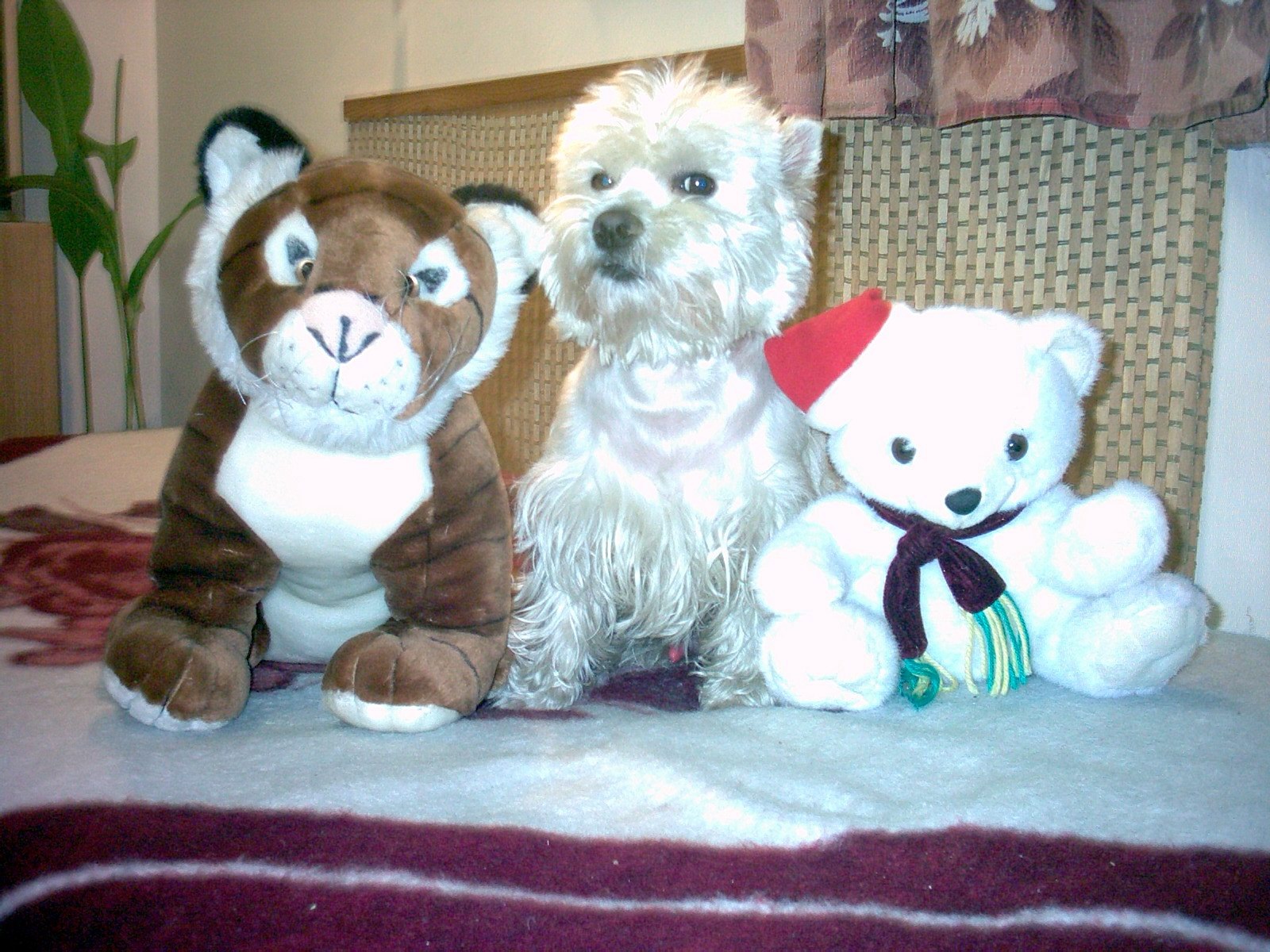 já už pro Montyho skoro všechno měla, tak jsem kupovala jen takové blbosti, koupila jsem mu obojem s krystalama os Swarovski - jak byl venku tak se blejskal pak jsem mu koupila obojek s šátečkem )černý s bílíma puntíkama), pak jsem koupila kleštičky na drápky, to jsem zvědavá jak to dopadne pak jsem mu koupila šampón na bílou srst, nějakou tu mňamku, keramickou misku... tu pilku jsem si taky chtěla koupit, ale ta baba u stánku mi řekla, že to je jen na krátkosrsté psy, a už si ji použila??? Tak možná jsme se tam potkaly, já se u westíků skoro pořád pohybovala....