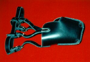 To není kovová "špona", je to kožený a slouží to k tomu, aby se do toho pes mohl zakousnout, a při nárazu si náhubek přidržet, protože náraz v rychlosti do osoby na nos celkem dost bolí a navíc si pes, takříkajíc kousne...