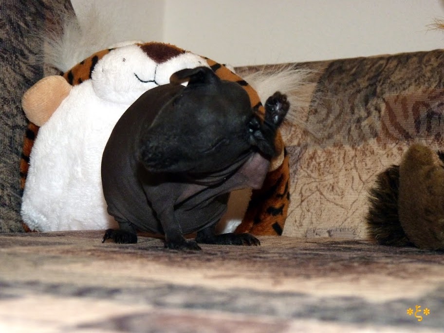 Ježíšmarjá teď jsem napočítala zase 5 noh! Po několikaminutovém čučení jsem přišla na to, že je to ucho Fááákt jako, tady se příroda vyřádila...Nebo to bude fotografem - ty neumíš fotit! No jasněěěě, to je ono, protože morčata jinak vypadají úplně normálně