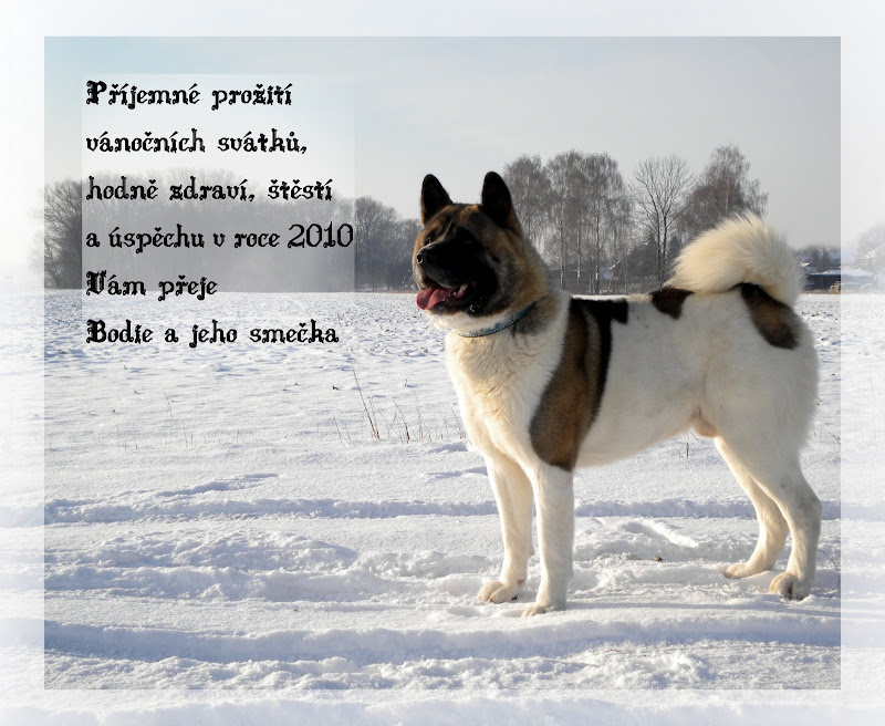 huu naši psi... Když jsem byla malá a bydleli jsme u babičky, tak měl děda vlčáka, pak jsme si koupili kokra→bulmastifa→černýho teriéra... Rusák umřel před 6 lety, Bulmastif předloni a kokr loni... Bobana budeme mít v lednu 4 roky... Babička po tom ČV měla Bulldoka a teďka má Bulteriera :-D Ale Bodie a ten Bulík jsou jediný, který mám já oficiálně ve výcviku(teda Bulík jenom příležitostně... jinak z lásky ke psům venčim sousedům Trpasličího jezevce a Bígla, protože jedný sousedkám je asi 80 a dostaly povedený dárky, který venčit nebudou :-/)