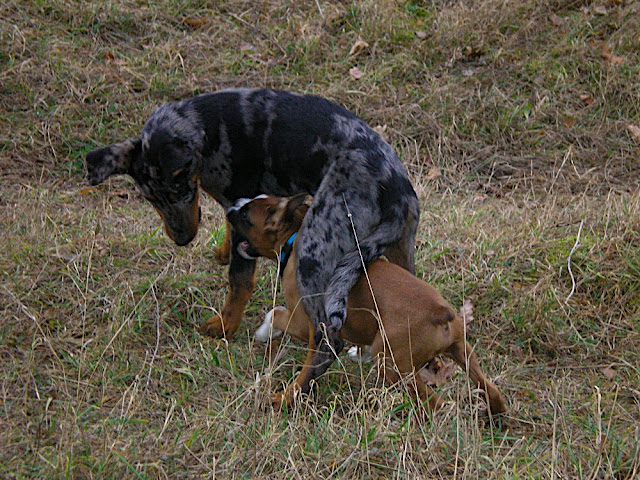 Jinak, kolik je Ignácovi? Jsme asi před rokem potkali v Ďábličáku boxera Ignáce, byly mu asi 3 měsíce, Brixině 4 a krásně se vyřádili - mám i pár fotek