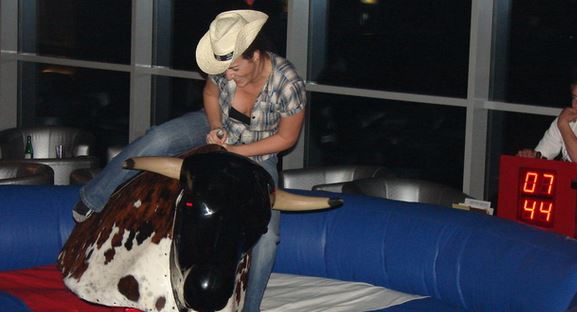 elektrickýho býka znám, jsme vyhráli s mým kamarádem soutěž ve španělsku-oba jsme v té době jezdili western a občas exhibičně rodeo sice na koních, ale proti elektrickému býkovi to byli koně o mnoho divočejší.