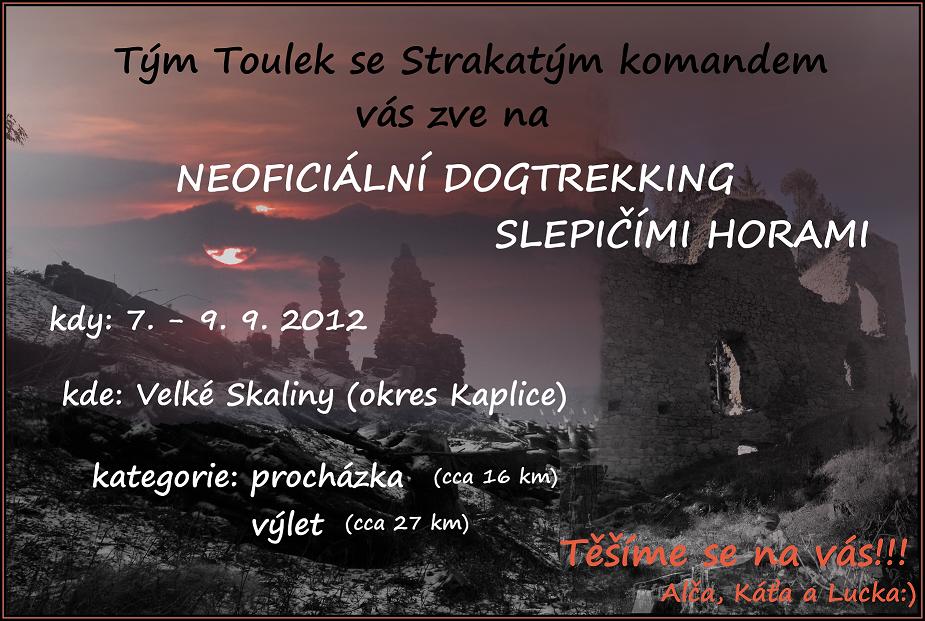 Srdečně Vás zveme na neoficiální dogtrekkingovou akci Toulky Slepičími horami. V sobotu budete mít možnost vyzkoušet dogtrekking. Na výběr máte ze dvou tras (cca 16 nebo 27 km).