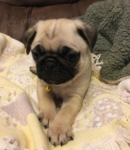 Krásná očkovaná černá a béžová štěňata mopsů na prodej.Detail inzerátu ID 114917