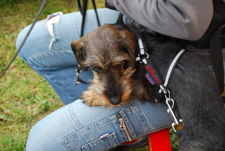 Ale bohužel není moc vidět... Ale naprostá spokojenost, jak se sedákem, tak i s postrojem a vodítkem... Už se těším, až bude i druhá dračice a zapřáhnu je obě... To se mi ten DT už půjde zase líp
