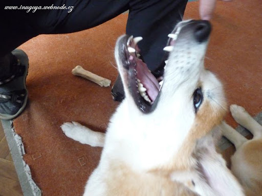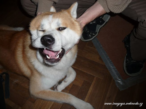 on je malej vždycky v pohodě, ale z nějakýho zvláštního důvodu po něm psi dost drsně jdou, takže už se mi pomalu začíná velkejch psů bát. on si nikdy nic nezačne, ale nejsem si úplně jistá, jak bude reagovat na obřího vrčícího akiťáka... přitom sám hubu nezavře, když má radost.