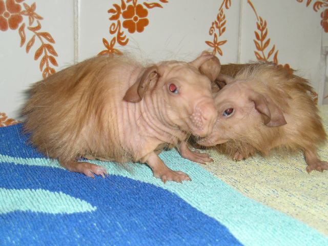 No a na přímo na prodej - teď je jedna samice, jenže ta je genová, tudíž úplně chlupatá tady : http://www.cavia-ania.com/ a jinak googli - ty jsou "baldwin"